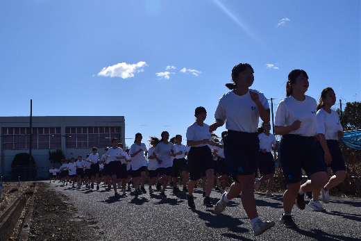 多少風は強く吹きましたが、快晴で天候に恵まれました。中学生は女子3.4km、男子は4.3km、高校生は女子5.1km、男子は7.0km走りました。多くの生徒が完走し、大きなけがなく終了しました。