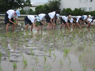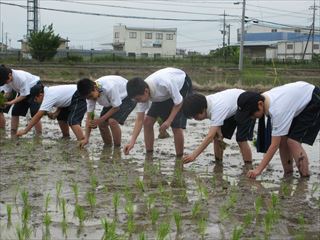 中学1年生 総合学習 田植えを実施